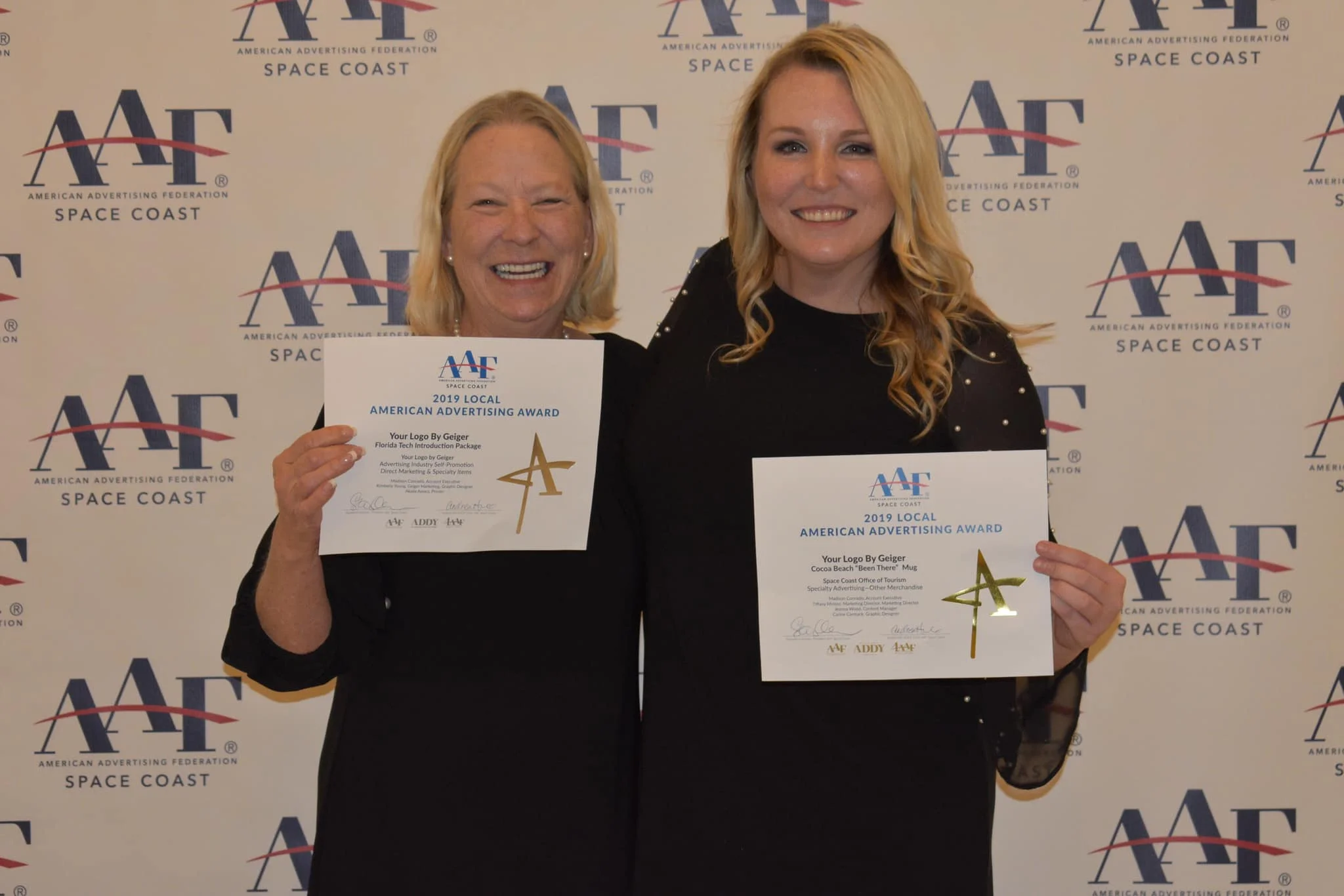 The mother and daughter duo Madison Conradis & Cathy Bell were recognized with a Gold ADDY award for their speciality advertising merchadise for client, Space Coast Office of Tourism. The team also earned a Silver ADDY award for their own self promotion direct mail piece.
